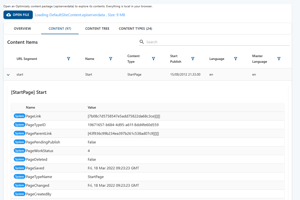 With this tool, you can upload a package and instantly browse its content types, pages, media, and more in a structured, user-friendly interface built with Blazor and MudBlazor.